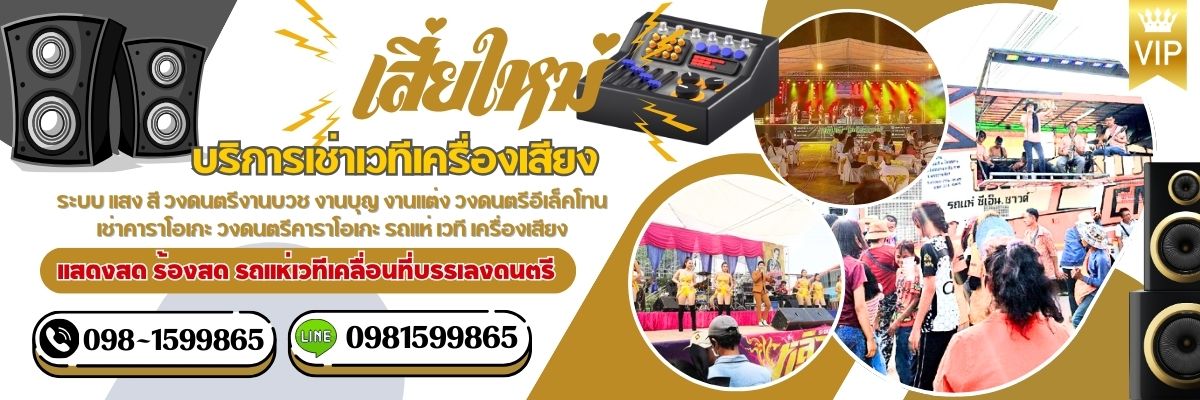 บริการจัดหาจ้างเวทีเครื่องเสียง ระบบ แสง สี วงดนตรีงานบวช งานบุญ งานแต่ง วงดนตรีอีเล็คโทน เช่าคาราโอเกะ วงดนตรีคาราโอเกะ รถแห่ เวที เครื่องเสียง ไฟประดับ นักดนตรี/วงดนตรี สมาคมนิยม รถแห่เคลื่อนที่